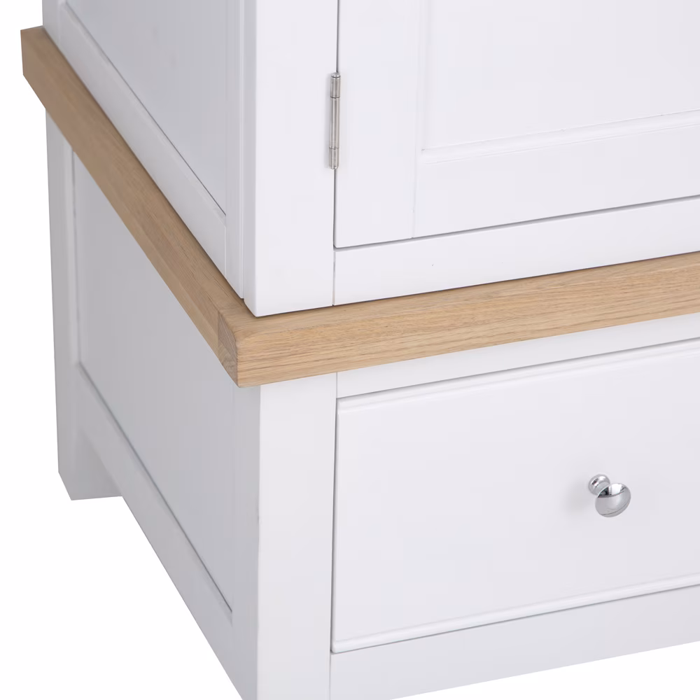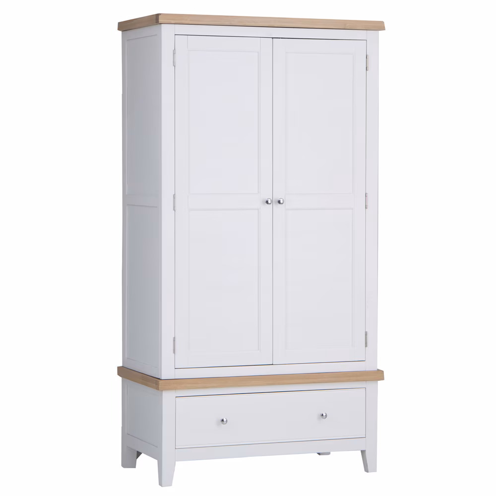 Discover the sophisticated Snow White and Light Oak double-door armoire, a stylish New Cotswold storage solution for modern bedrooms.
