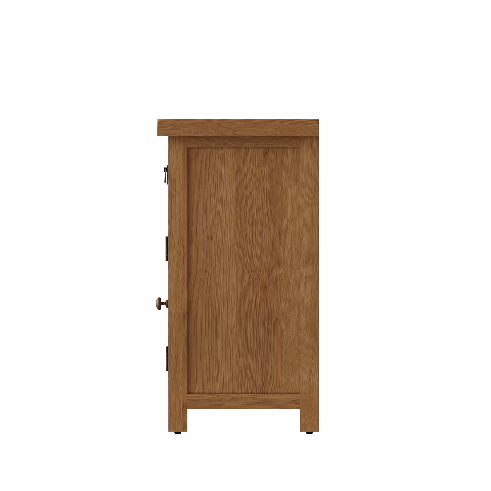 This stunning sideboard brings the warmth of medium oak and the charm of antique brass effect touches into your home.