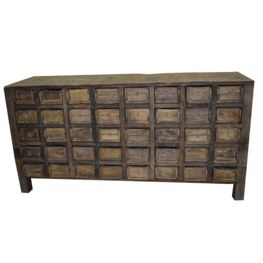 This antique sideboard features forty cataloguing drawers, very unusual compared to kitchen sideboards you’d find in many contemporary furniture shops. The oak is beautifully worn and aged, in a way that only authentic antique furniture can achieve. It’s sure to capture the eye of anyone entering into your kitchen.