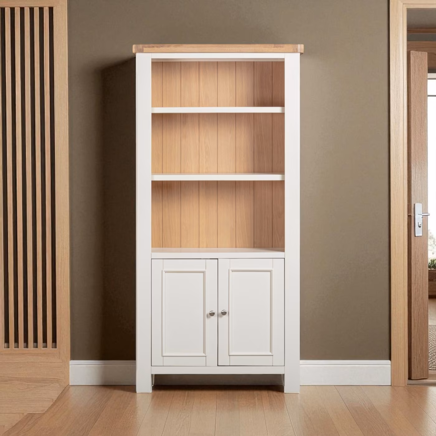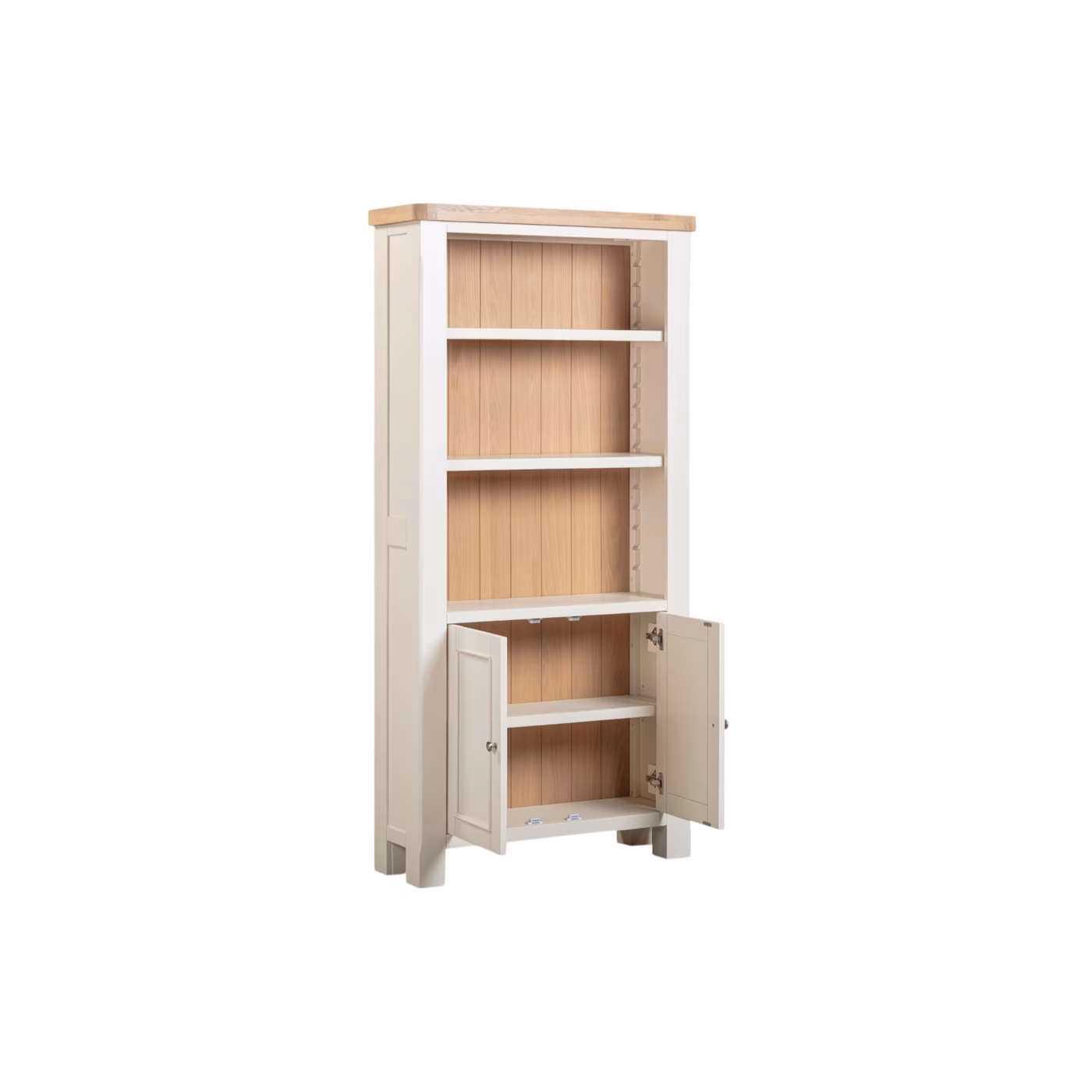 Part of our Windsor range, this Windsor Large Bookcase pairs a painted white base with a natural oak top in a Woca Oil finish for a bright, timeless look — ideal for country or contemporary homes.